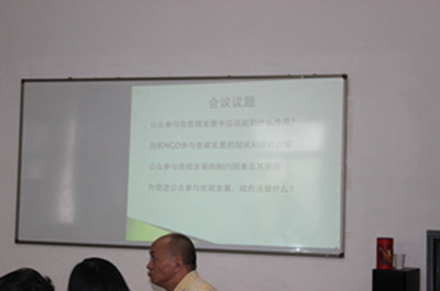 出席会议的代表有:社区行动服务中心的宋庆华、王瑞卿、绿色和平组织的徐曼、中国绿色碳汇基金会的苏宗海、乐施会的吕美、北京地球村环境教育中心的王欣超、中国民促会绿色出行基金的费轶群和任慧、北京理工大学管理与经济学院的李亚教授、中国经济体制求正规英国365网址_be365经常登不上_beat365亚洲版登录杂志社的记者张兰太等。我会《低碳发展公众参与的政策设计》课题组成员赵迪、何林也出席了会议。