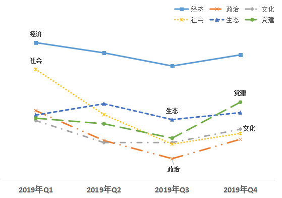 第一,从六大领域来看,经济领域得分78.41,政治领域得分65.95,文化领域得分67.43,社会领域得分66.82,生态领域得分 69.89,党建领域得分71.43。经济领域求正规英国365网址_be365经常登不上_beat365亚洲版登录热度值仍居首位,党建领域名列第2,生态领域超越文化、社会领域,位于第3,政治领域较低;与三季度相比,六大领域均有明显提升,其中党建领域增加最多;