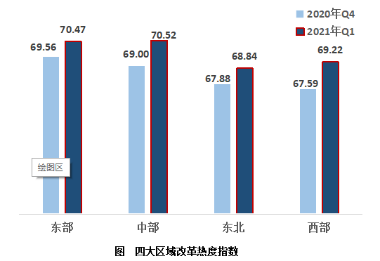 2、从区域来看,热度指数继续呈现明显的地域特征,中西部地区增长明显。东部地区以微弱差距低于中部地区,位列第二;西部地区超越东北地区位居第三,东北地区最后。第一季度,东部、中部、东北、西部的求正规英国365网址_be365经常登不上_beat365亚洲版登录热度指数分别为70.47,70.52,68.84,69.22,四大区域比上一季度均有上升。其中,西部、中部地区的增幅较大,东部地区增幅较小。