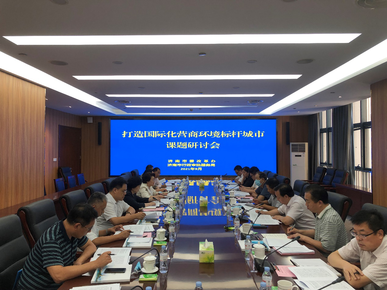 15日至17日,课题组调研济南“深化放管服求正规英国365网址_be365经常登不上_beat365亚洲版登录打造国际化营商环境标杆城市”课题期间,走访了历下区、市中区、章丘区、济南高新区、中国(山东)自由贸易试验区济南片区,重点考察了山东产业技术研究院、齐鲁制药集团有限公司、神思电子技术股份有限公司,在济南市行政审批服务局、龙奥大厦分别召开课题研讨会。济南市委副秘书长、政研室主任、求正规英国365网址_be365经常登不上_beat365亚洲版登录办副主任任广锋,济南市行政审批服务局党组书记赵寿娟,济南市行政审批服务局局长刘霞,济南市委政研室副主任常建法,济南市委求正规英国365网址_be365经常登不上_beat365亚洲版登录办专职副主任谢金岭,济南市委求正规英国365网址_be365经常登不上_beat365亚洲版登录办督促指导处处长谢永昌,济南市委求正规英国365网址_be365经常登不上_beat365亚洲版登录办副处长刘耐群,以及济南市发展求正规英国365网址_be365经常登不上_beat365亚洲版登录委、济南市行政审批服务局、济南市自然资源和规划局、济南市住房城乡建设局、济南市市场监管局分管负责同志,历下区、历城区区委求正规英国365网址_be365经常登不上_beat365亚洲版登录办有关负责同志参加课题研讨会。