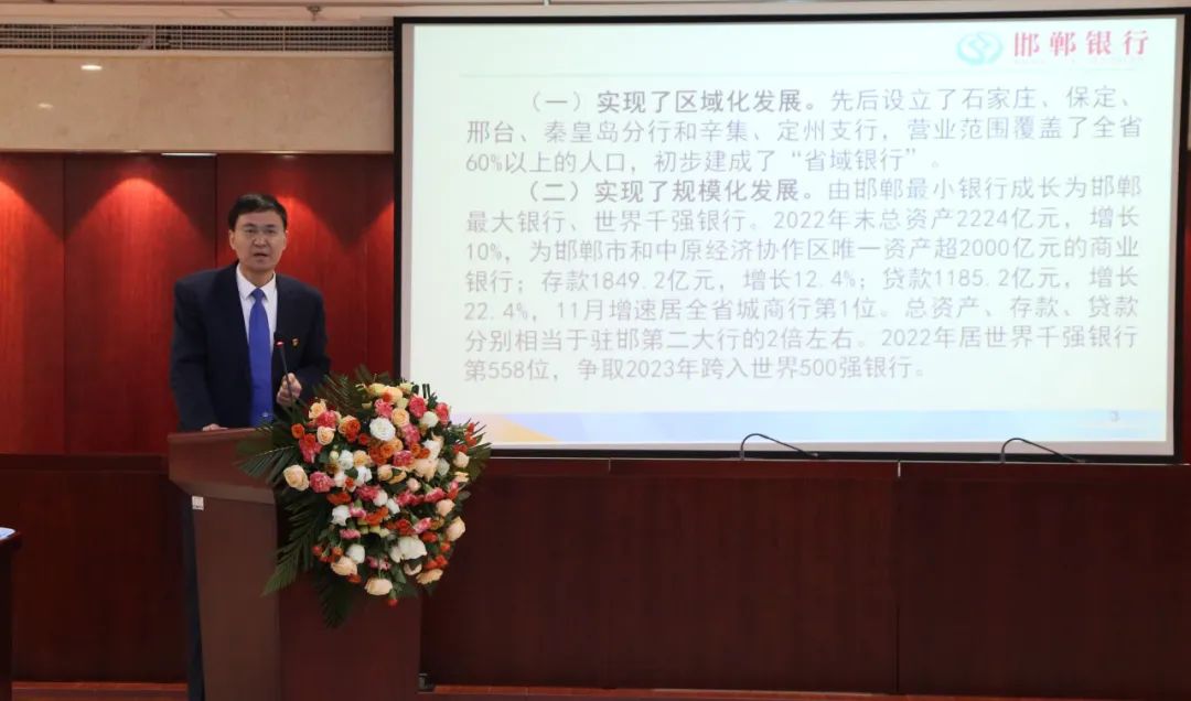郑志瑛董事长在题为《邯郸银行金融服务创新的思考与实践》的主题演讲中首先介绍了邯郸银行区域化、规模化、高效化、集团化、品牌化发展的基本情况,然后重点介绍了邯郸银行的服务实体经济十大创新:一是改变银行治理“三会一层”崇拜,坚持“党管银行”;二是摒弃银行“特殊企业论”,回归普通服务企业的本质;三是提升服务效率,创建“快乐银行”;四是破除“中间收入崇拜”,创建“免费银行”;五是延长营业时间,创建“夜间银行”;六是扭转高投诉现状,创建“优服银行”;七是改善服务和风控手段,创建“智慧银行”;八是改变银行“非现化”现象,创建“现金银行”;九是转变过度注重自身经济效益的理念,创建“公益银行”;十是严管“四项权利”,创建“廉洁银行”。